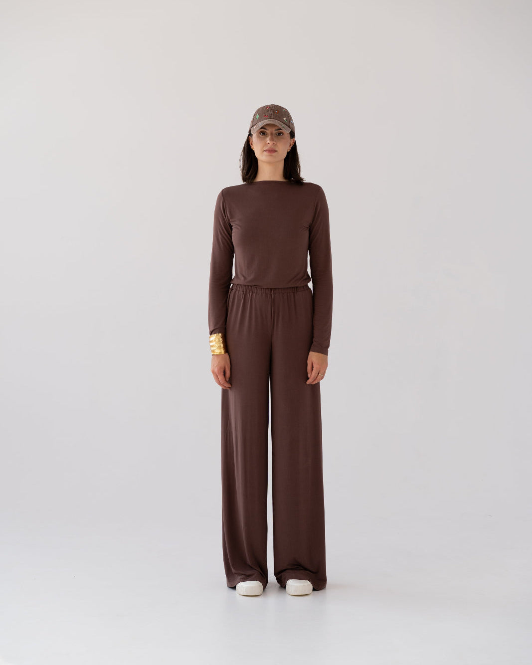 Bluzka z długim rękawem zaprojektowana dla wysokich kobiet, które cenią wygodę i dopracowane proporcje. Uszyta z lekkiej dzianiny bambusowej – oddychającej, miękkiej i przyjemnej dla skóry także w cieplejsze dni.