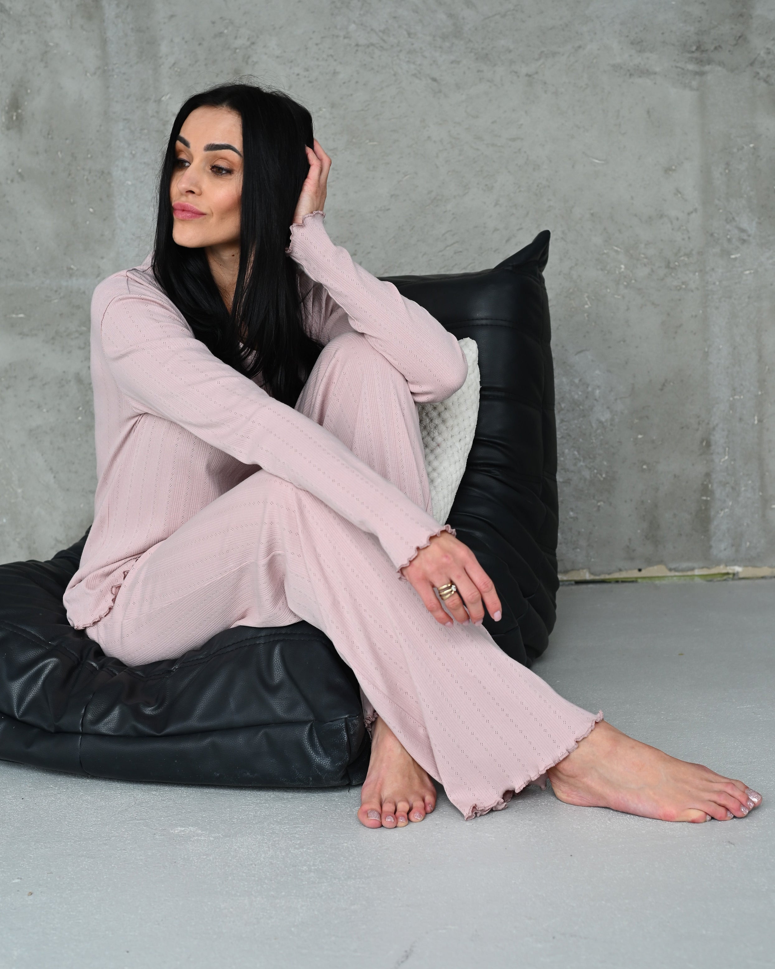 Dzianina jest miękka, oddychająca i przyjemna dla skóry przez całą dobę.
