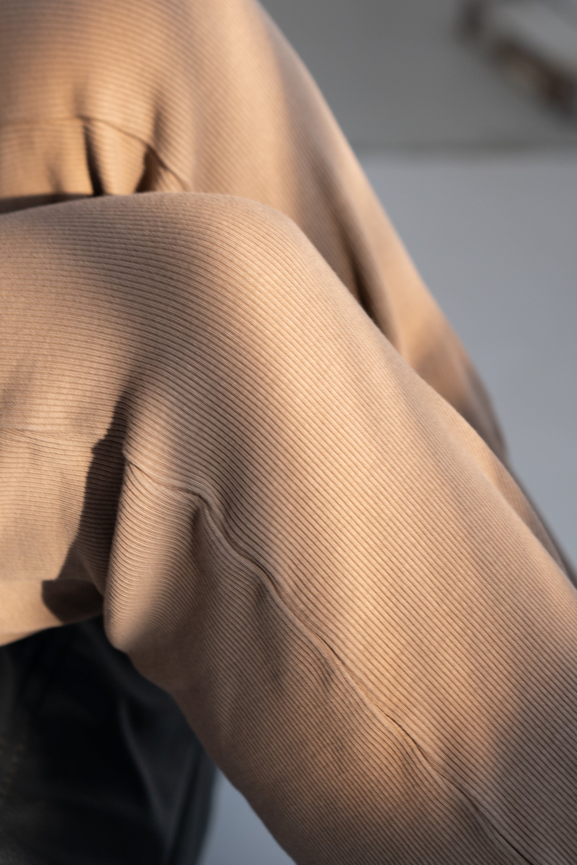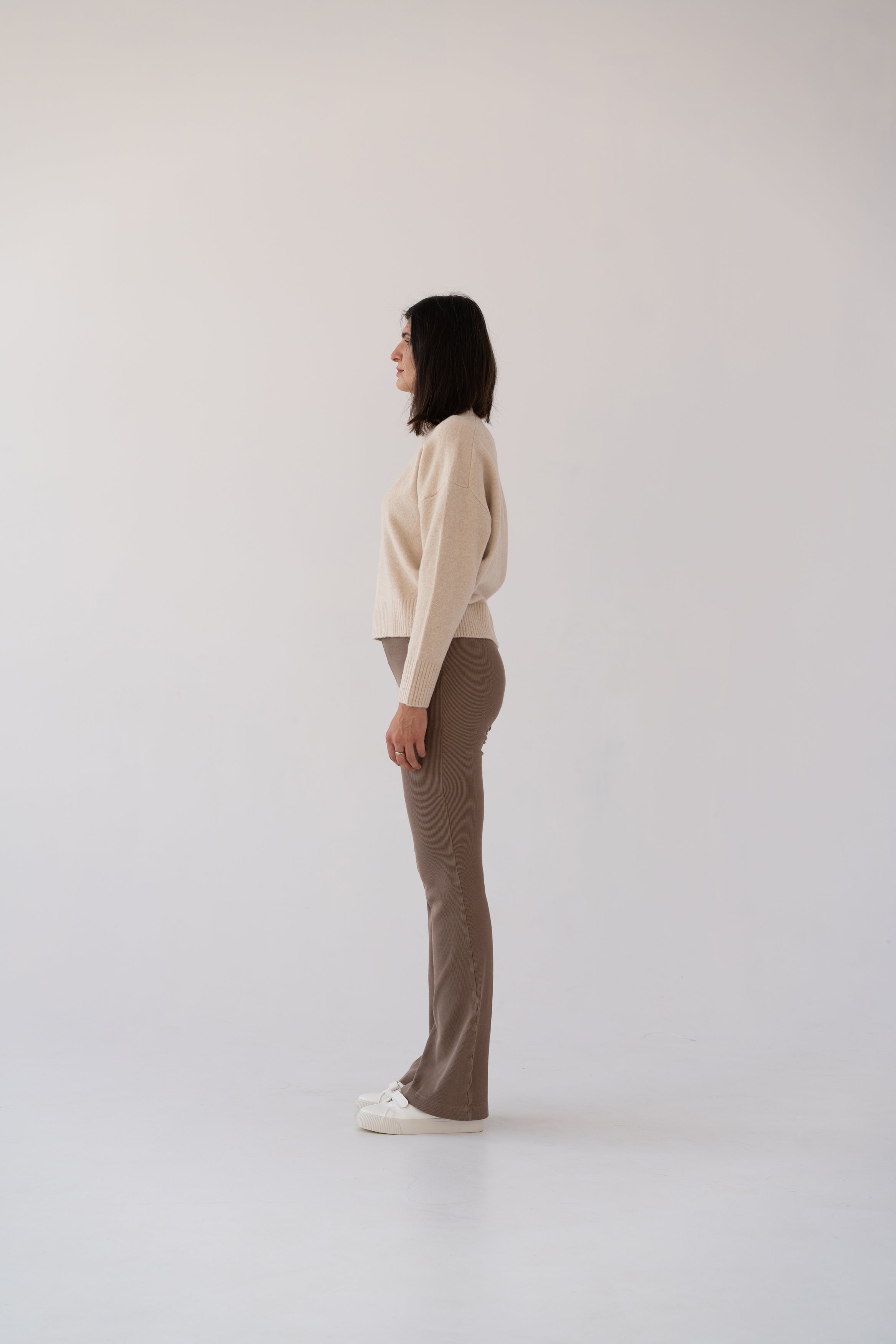 Legginsy uszyte z elastycznej dzianiny prążkowanej, która łączy naturalną miękkość bawełny z dodatkiem elastanu. Materiał jest przyjemny w dotyku, oddychający i dopasowuje się do sylwetki, zapewniając wygodę przez cały dzień.