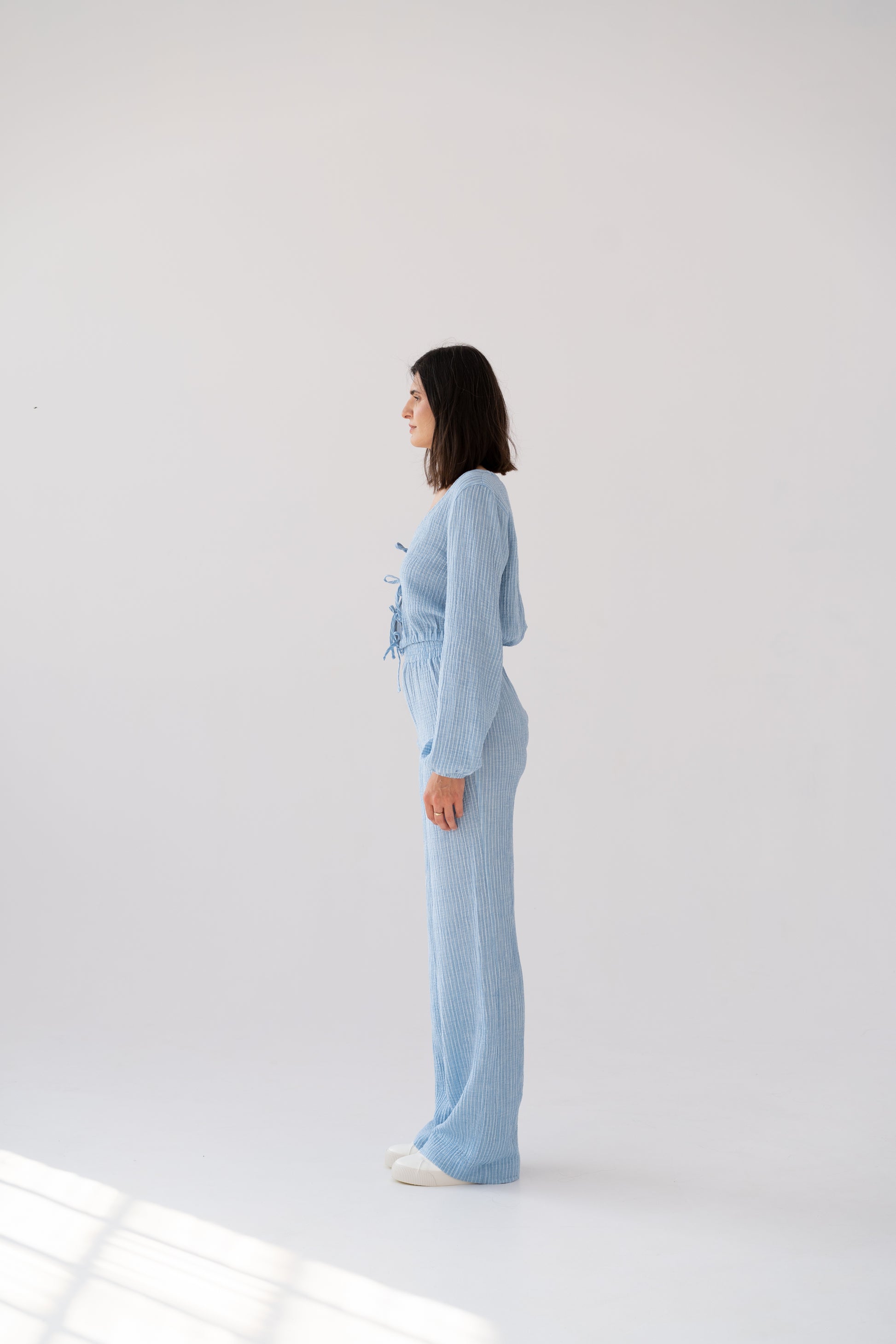 Spodnie na gumce wykończone 4 cm mankietem, który daje możliwość indywidualnego przedłużenia nogawki.
